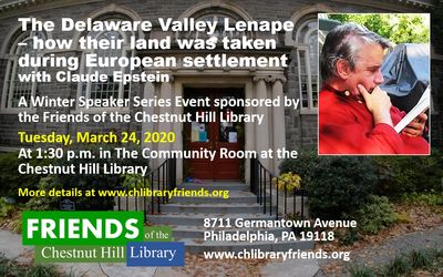 Focusing on the political environment up to and during the American Revolution, this talk is an exploration of the Lenapes' quandaries, the roles played by Quaker Proprietors, the Pennsylvania Assembly, the frontier settlers, the Iroquois Nation and European governments. (This is an updated version of a previous talk at the Library.) Claude Epstein is a retired Stockton University Professor of Hydrology, an expert on the impact of European settlement on the Delaware Valley’s natural resources.